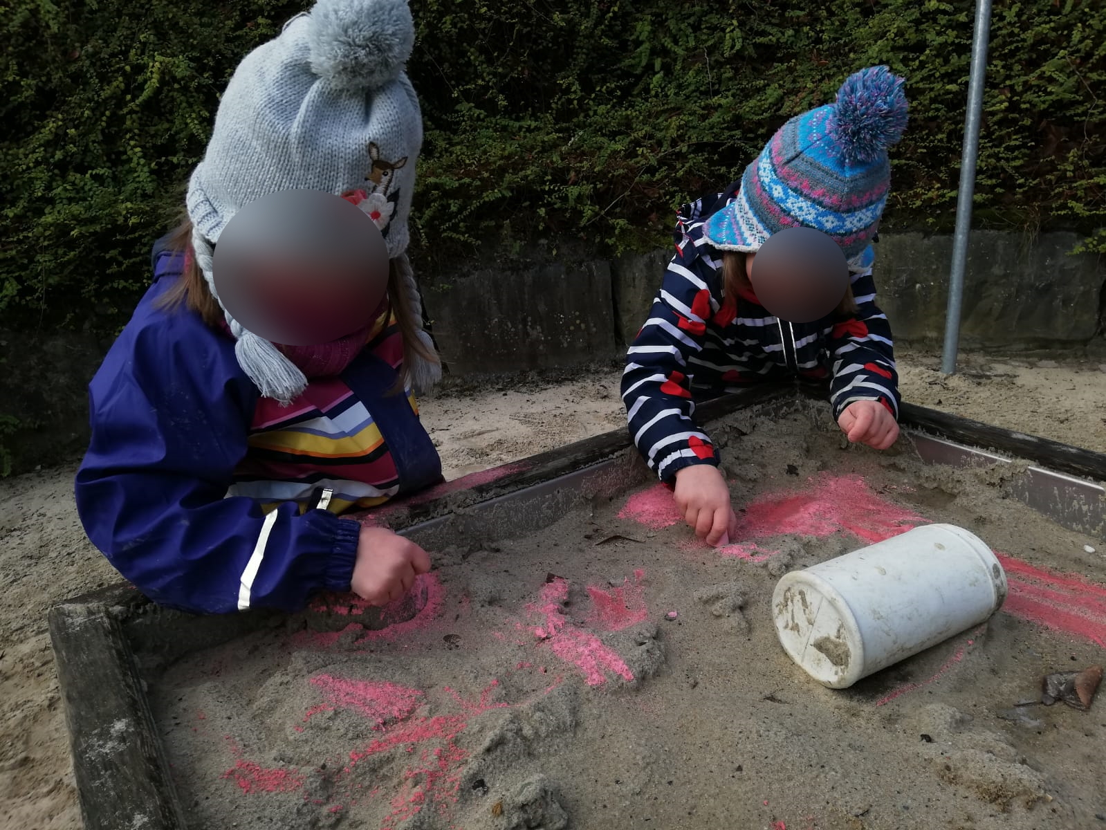 - das Außengelände bietet Raum zum Ausleben des Bewegungsdranges mit unterschiedlichen Fahrzeugen, Matschanlage, Rutsche, Klettermöglichkeiten, Rasen- und Sandspielflächen