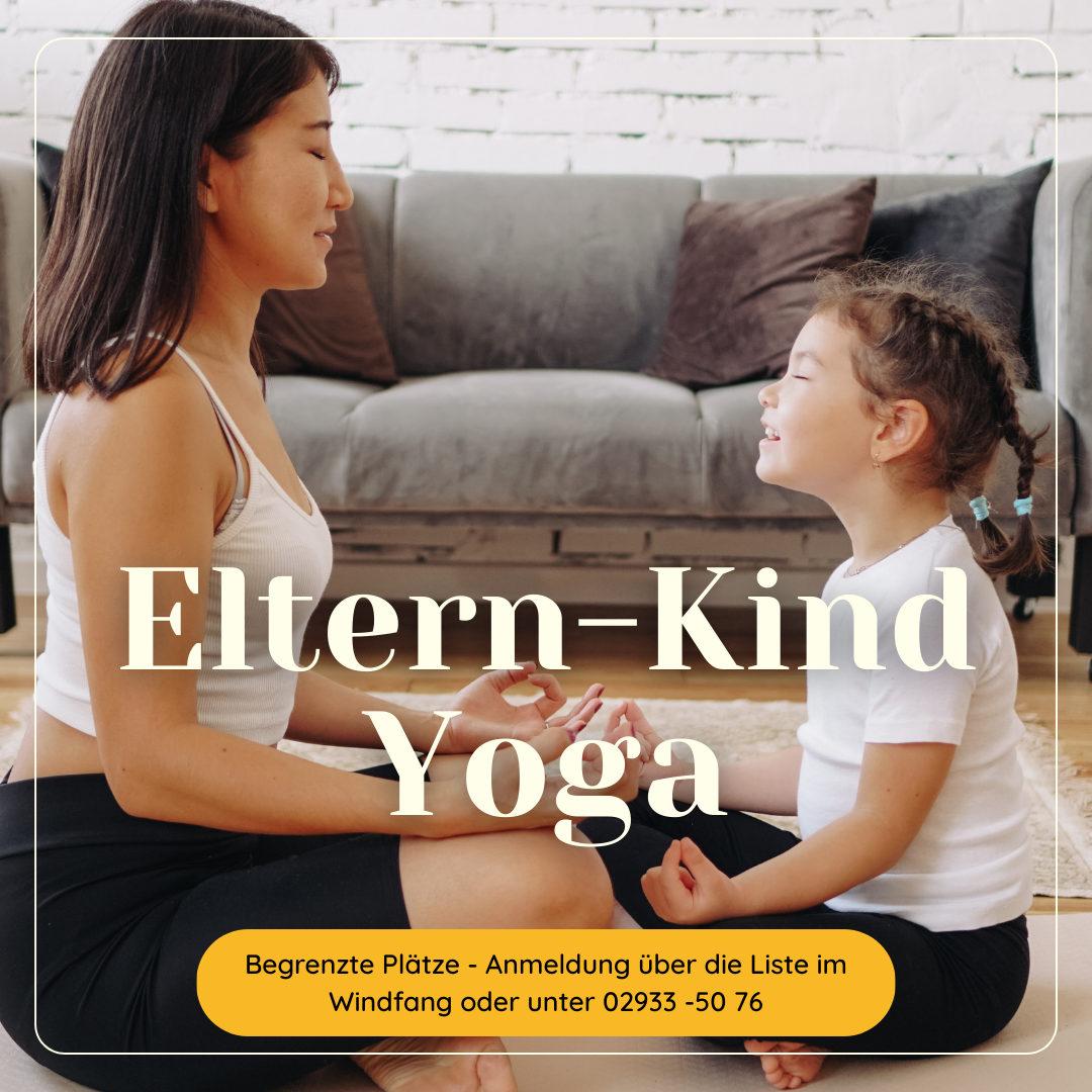 Heute findet bei uns im Familienzentrum Eltern-Kind-Yoga statt. Gemeinsam mit Mama oder Papa können die Kinder spielerisch erste Yogaübungen kennenlernen, sich bewegen, entspannen und eine schöne gemeinsame Zeit erleben. Durch kleine Bewegungsübungen, Geschichten und ruhige Momente wird die Körperwahrnehmung gefördert und die Bindung zwischen Eltern und Kind gestärkt.