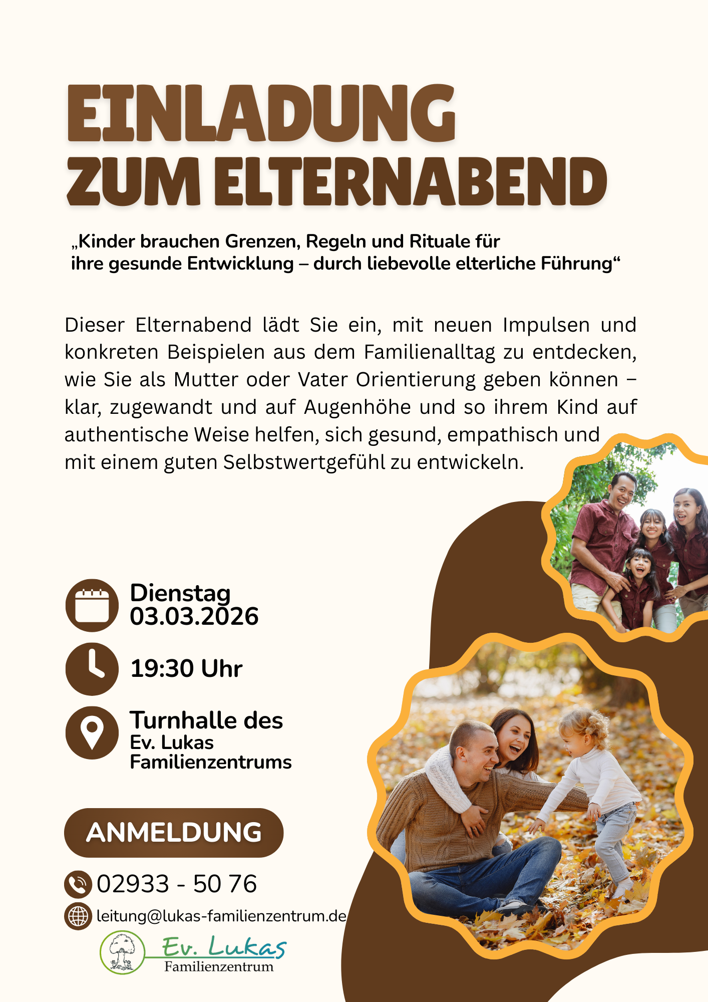 Dieser Elternabend lädt Sie ein, mit neuen Impulsen und konkreten Beispielen aus dem Familienalltag zu entdecken, wie Sie als Mutter oder Vater Orientierung geben können – klar, zugewandt und auf Augenhöhe und so ihrem Kind auf authentische Weise helfen, sich gesund, empathisch und mit einem guten Selbstwertgefühl zu entwickeln.